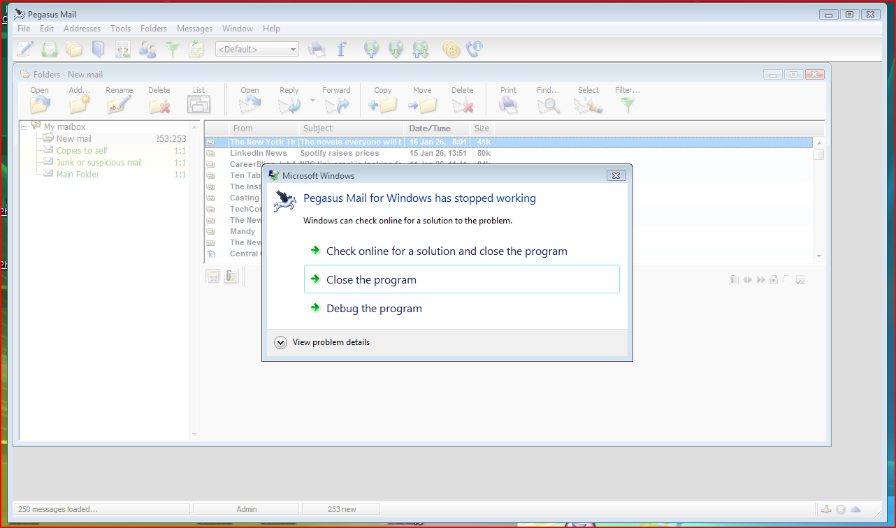 Pmail version 4.91 IER 2.7.3.5 Windows 10 up to date. 8GB RAM