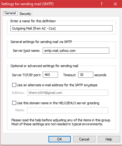 I might be asking Pegasus to do something that is not possible but I would like to send mail from Pegasus to the SMTP server at Yahoo (converted from Cox) but have it show to the recipient as having come from my preferred gmail account. I thought I could do this by marking the "Use an alternate email address for the envelope" option in the SMTP General settings.
