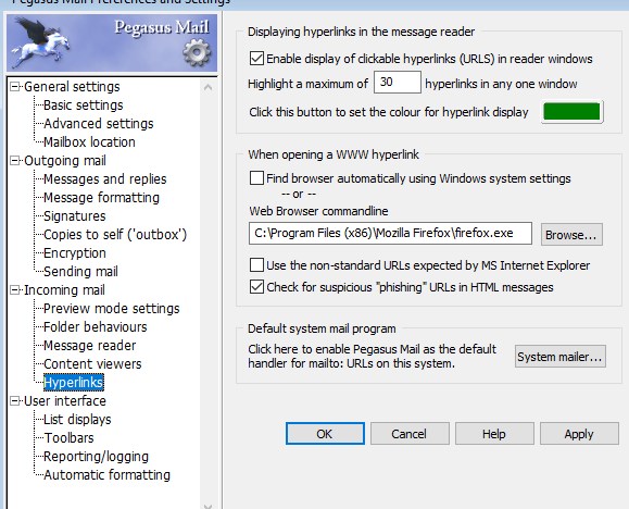 Tried to run Pegasus program directly, and it flashes the screen. But that is probable since it just lets select the program but no options. I have setup with -A option. Will probable need to go to config if I want to load Pegasus as a client rather than mailto: