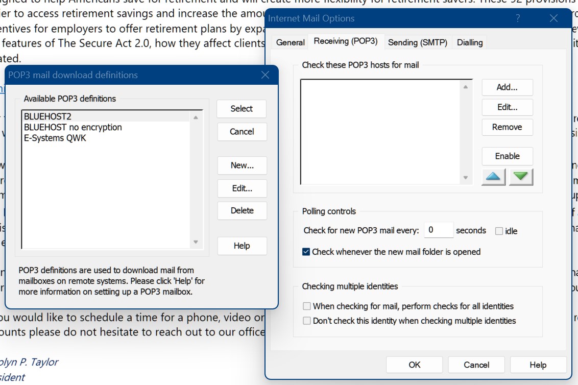 Working home mailbox location = C:\PMAIL\MAIL\JILL2