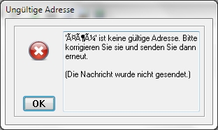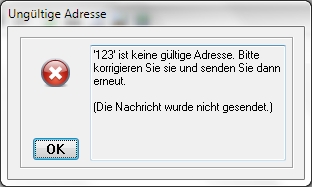Wenn du obige Adresse (ohne die Anführungszeichen) direkt (also nicht als Antwort) in Pegasus Mail's Adresszeile eingibst, dann protestiert es beim Sendeversuch sofort, die Email würde gar nicht erst rausgehen. Das sieht dann so aus: