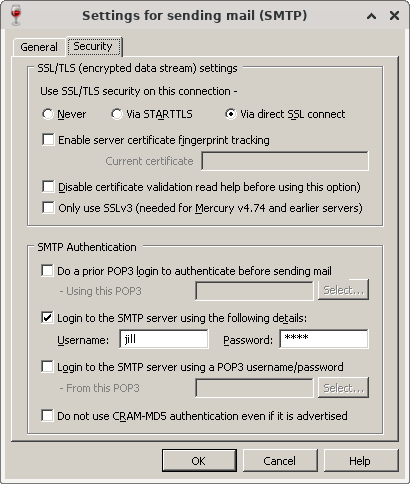 Then tried to send an email to myself, but of course it fails since don't have an account on that system, but the log file shows that it connnected fine. This is a dummy account jill, so password is not a real password..