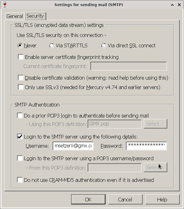 I set all the parameters to my new email adress in Pegasus Mail. I was able to even send an email, but I encountered problems with the pop retrieving part.