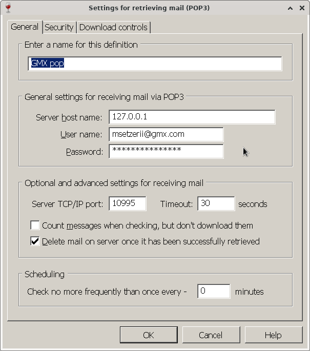 Connect to 'pop.gmx.com' port 995, timeout 90.