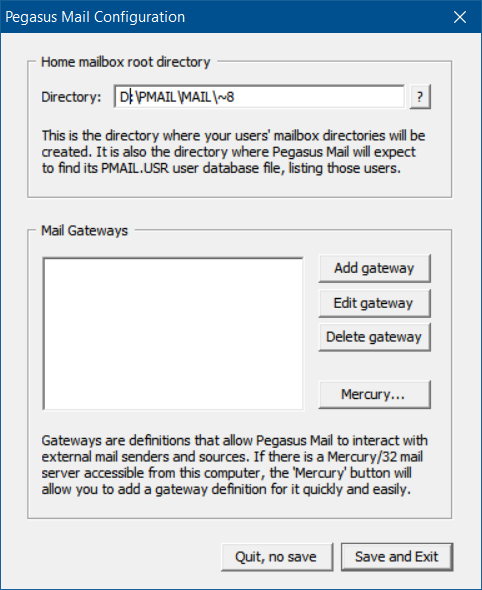That's it! Pegasus Mail should use the new mailbox location the next time it starts. Once started, go to Help > About Pegasus Mail > Info button and confirm that the path displayed for the Home and New mailbox locations is D:\PMAIL\MAIL\mdod.