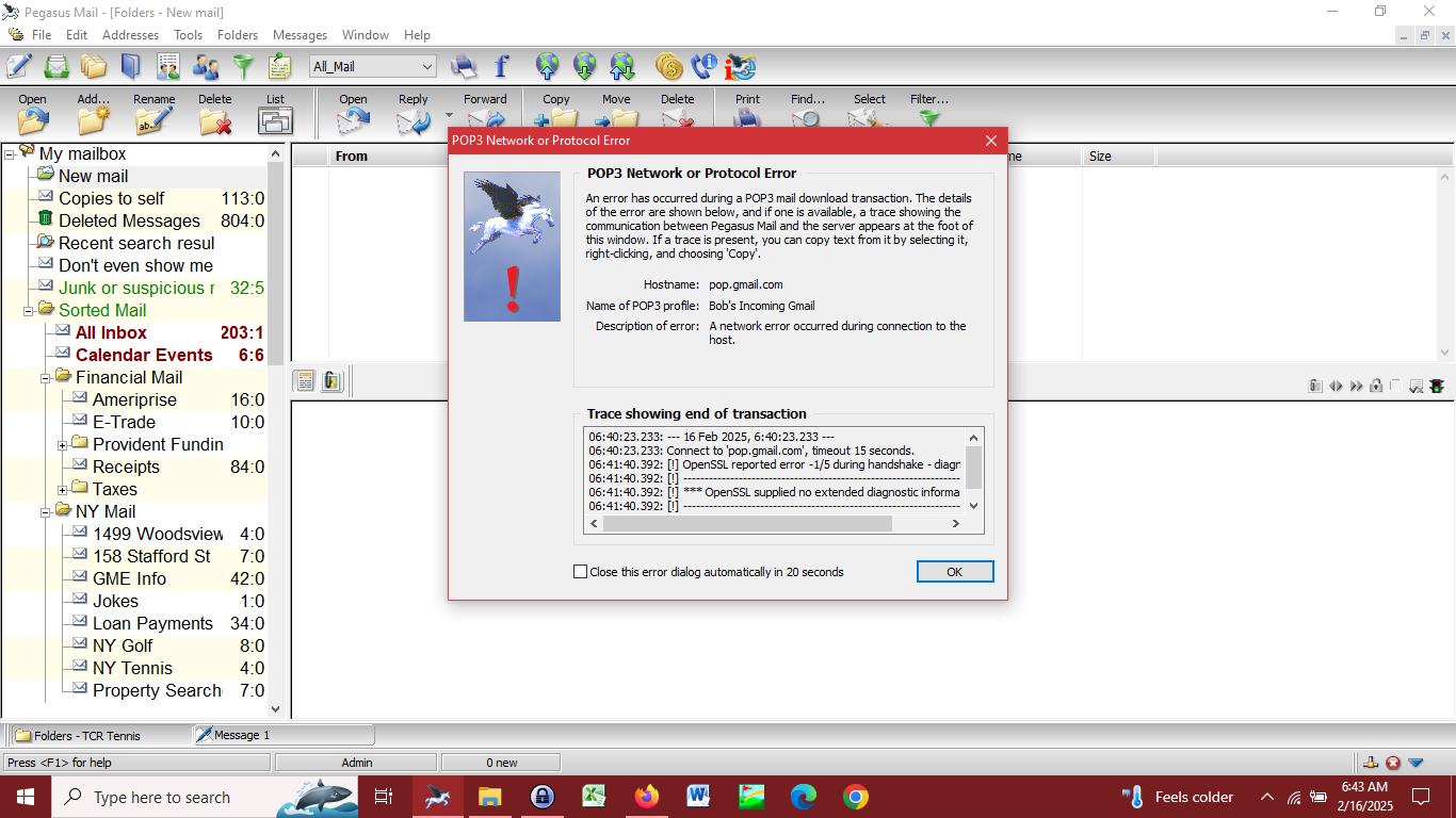 06:56:31.956: Connect to 'pop.gmail.com', timeout 30 seconds.