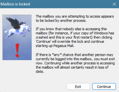 The "locked whatever" notice has only appeared about twice, then it sorts out its folders. There is no one else using this computer or another instance of PM running. Is "abend" what you meant? - I've no idea what it is.