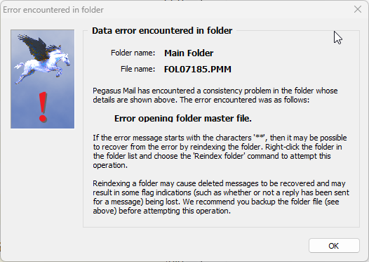 It also happens if you try to open Pegasus twice at same time.