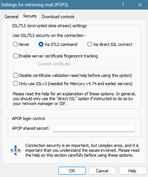 There is an internet session logging function that can help with troubleshooting. It can be enabled by a check box at the bottom of the General tab in Tools > Internet options. The log file will be created in a subdirectory of the mailbox directory. That subdirectory is named TCPLogs. The log files will have an extension the identifies the protocol that was logged but they are plain text files so can be viewed with a text editor. Do not post an entire log, it will contain your login credentials, sometimes in plain text, sometimes encrypted. If you see them in plain text then you can remove them and post the log. I you don't see them, don't post the log because they are there in an easily decryptable form. We can tell you how to identify and remove them if needed so that you can post the log but often you can identify the specific log entries that identify the failure and you can advise us based on what you see.