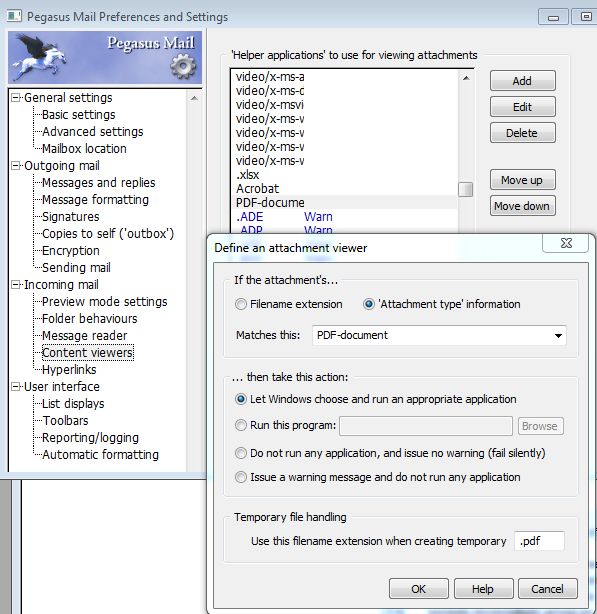 Adding this might work having the document passed to windows pdf viewer.(Did think of having it use the .pdf extension of file as an option).